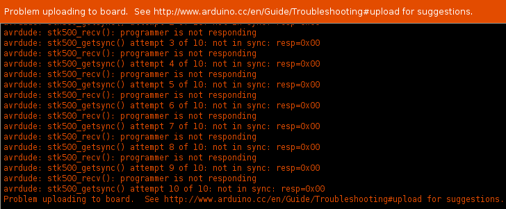 When trying to program the ATMEGA chip, I am met with the following error: Figure 18: Arduino IDE error.