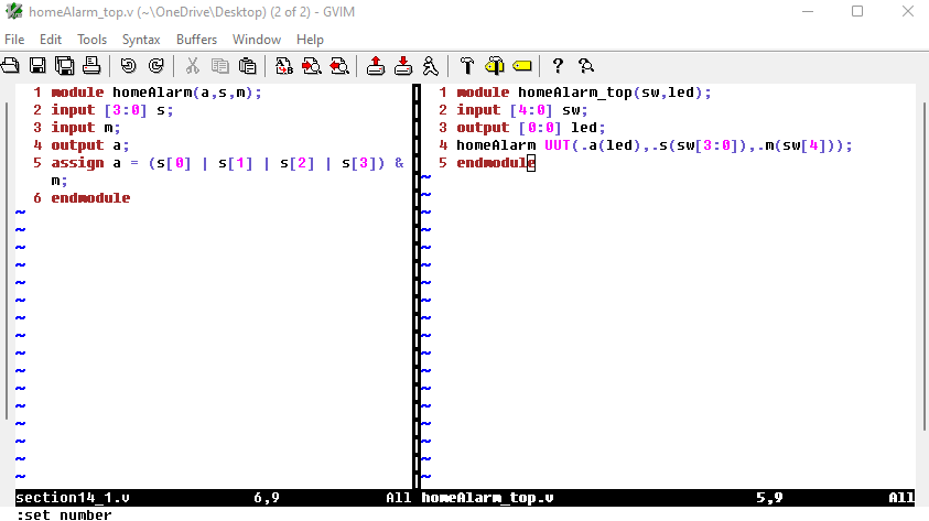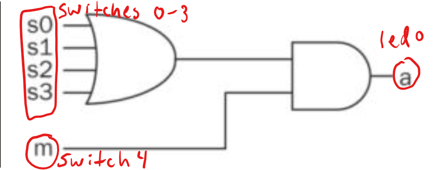 Figure 3: Simple home alarm system based on 5 switches and an led for output.