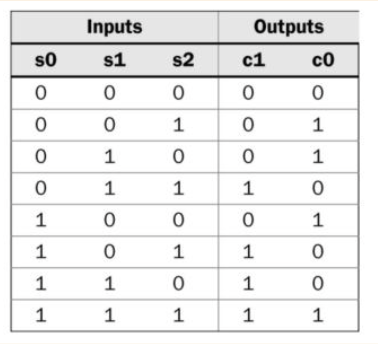 When all three spots are occupied, then both C_1 and C_0 are 1 (11) representing all three spots are occupied.