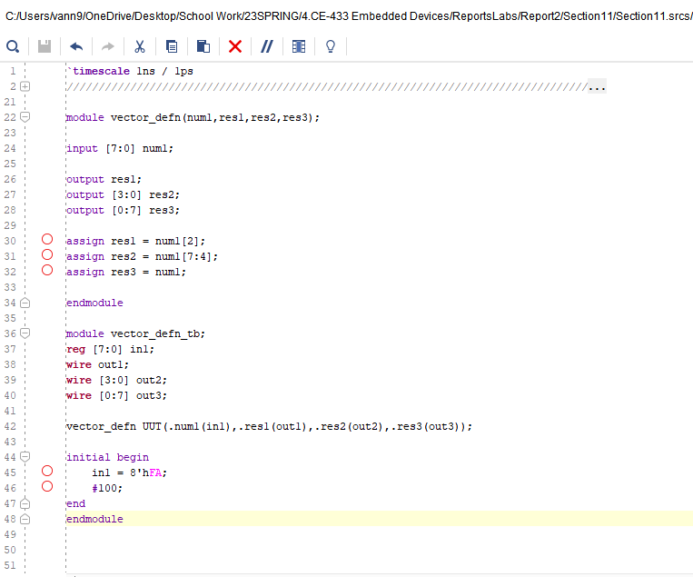 Section 11 had code snippet, which I wrote into Vivado and ran the simulation.