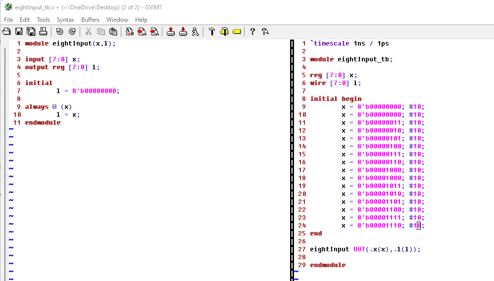 Figure 7: Code for the 8-input simulation.