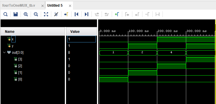 Figure 11: Results from the 4-1 MUX simulation.