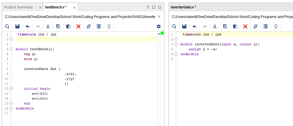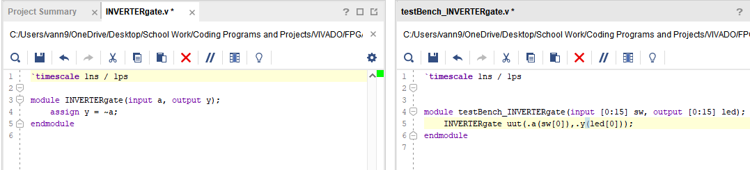 Figure 1: Inverter simulation code module and test bench.
