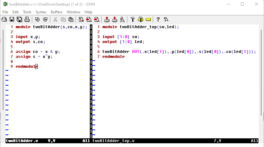 Figure 4: Code for the 2-bit adder and test bench.