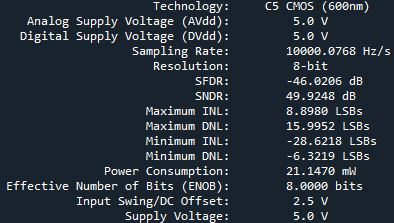 Once the final simulation was complete, I exported the voltage data as a text file and created a python script to calculate the INLs and DNLs and plot the data. These can be seen in Figures 1,2, and 3 below.