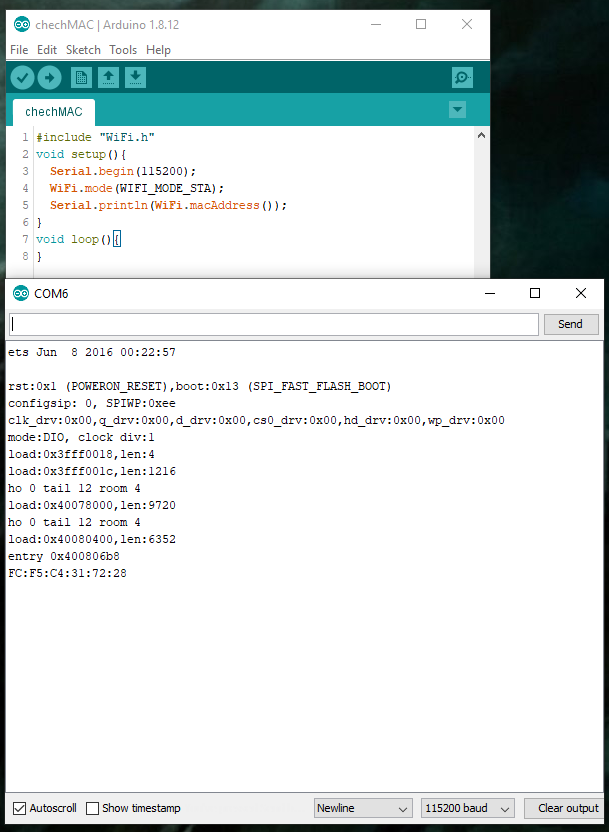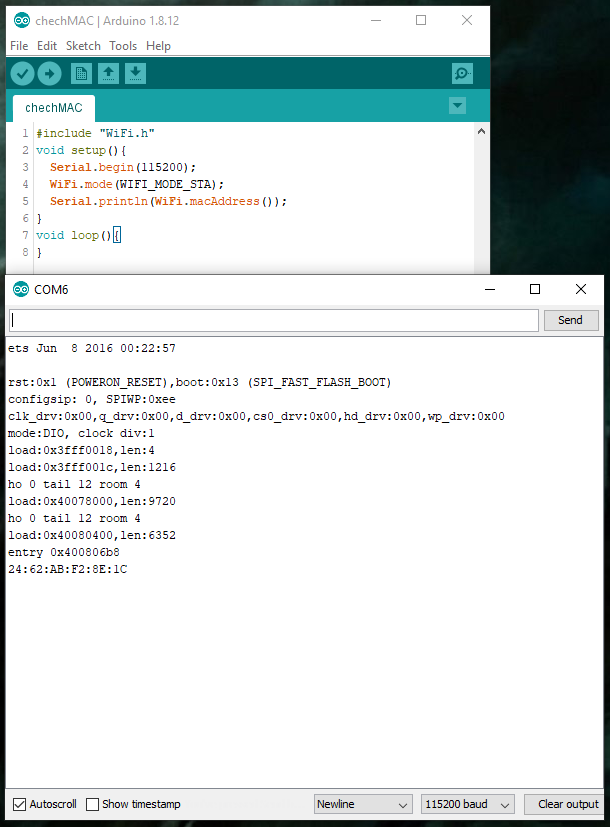 The MAC address of the "master" ESP32 module is on the right. The MAC