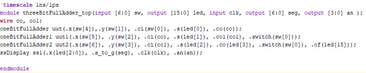Figure 1. Top module for the 3-bit full adder, being the 2's compliment top.