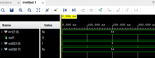 You can see the vectors flip in out3 since it defines the vector of bits backwards.