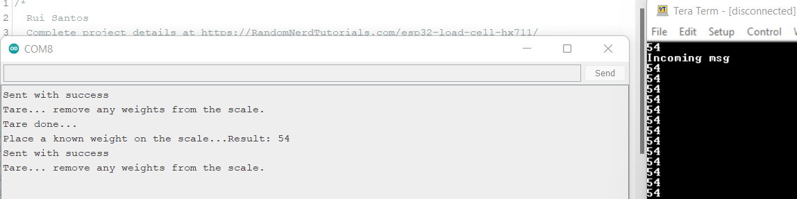 Figure 2: SerialPrint on Main ESP32 and then Tera Term shows Serial Print of second ESP32