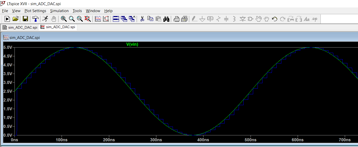 simulation results from LTSpice with the R-2R ladder created by using