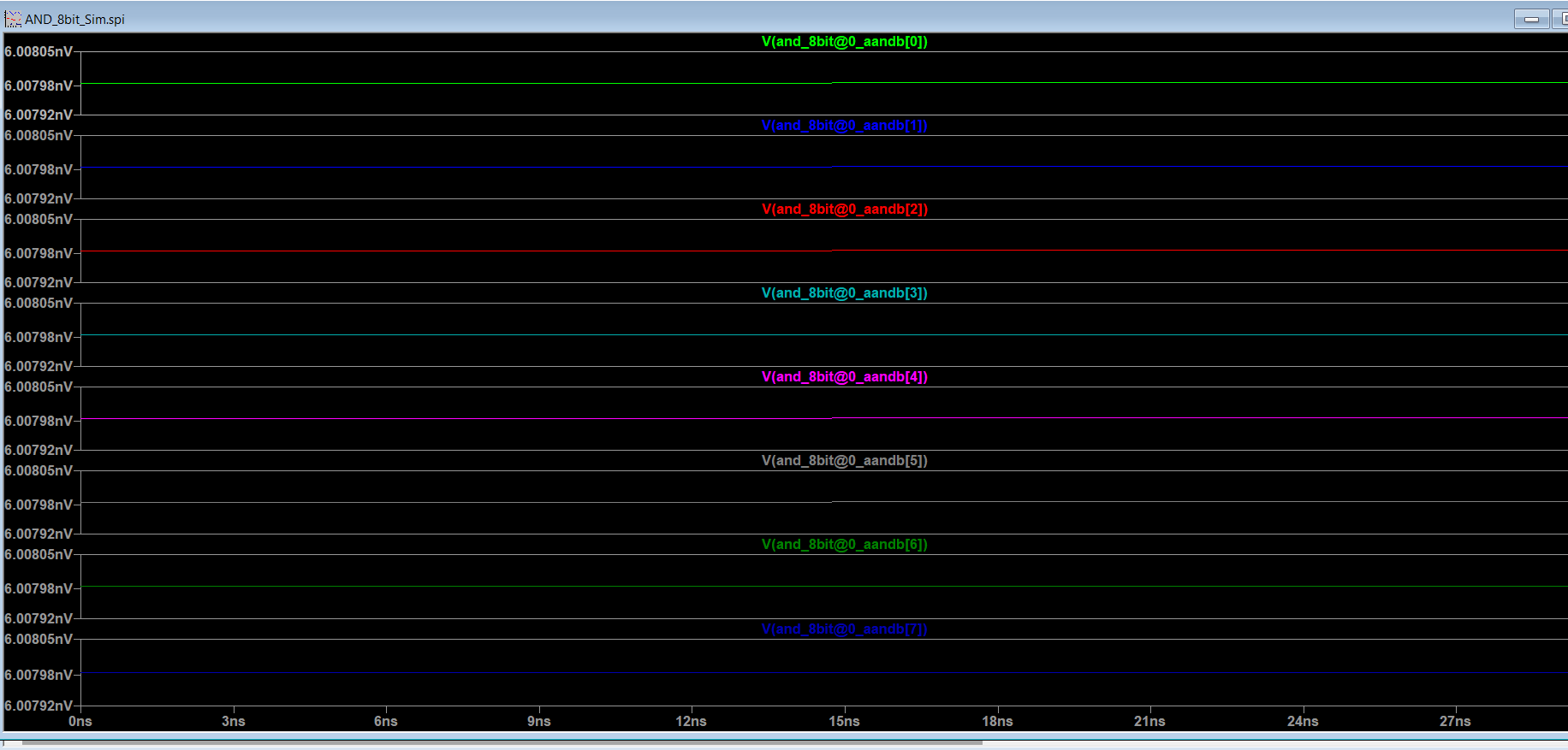 Figure 8: Shows LTSpice simulation of a grounded 8-bit AND gate