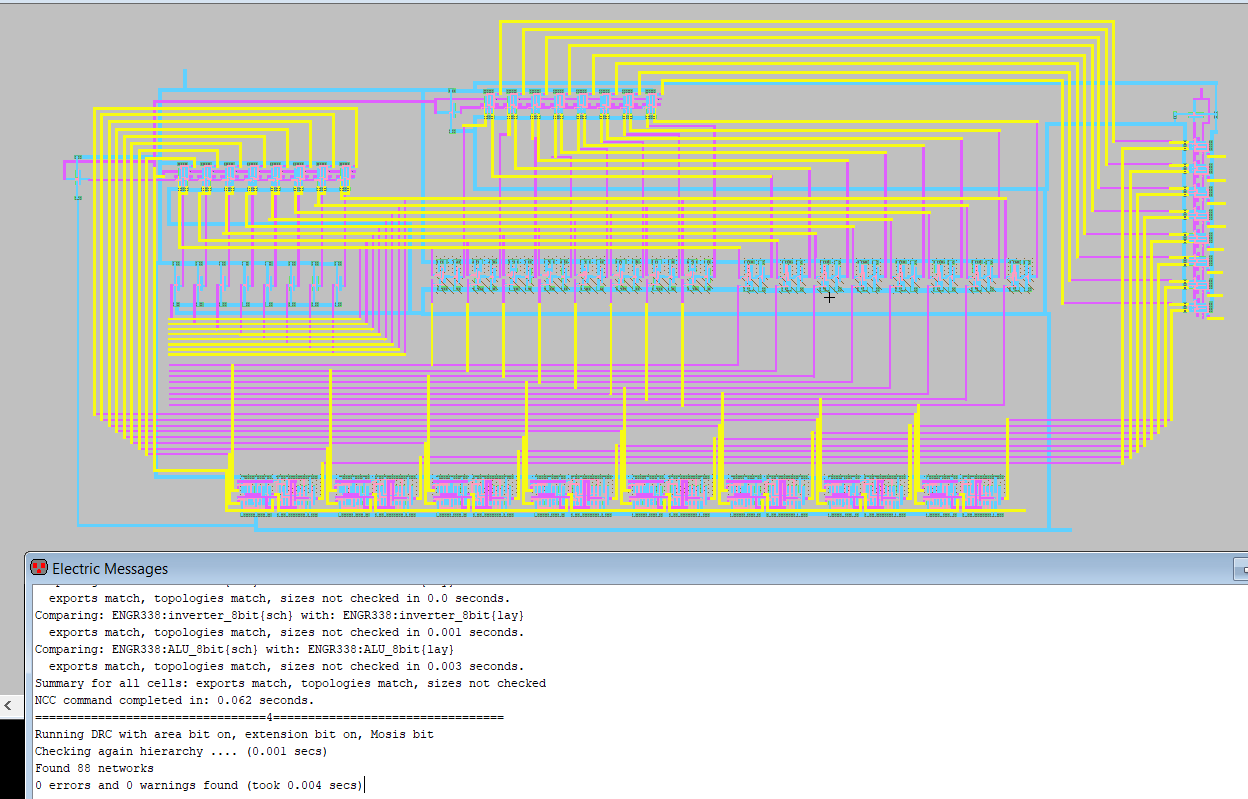 the entire layout of the 8-bit ALU without any NCC or DRC errors. This