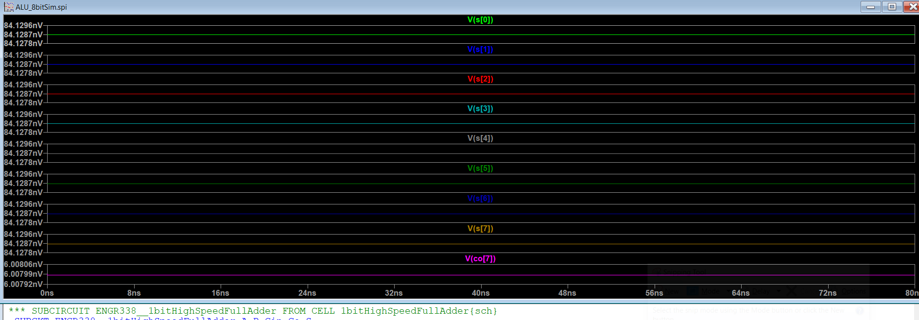 Figure 5: Shows the LTSpice Simulation of the ALU Addition