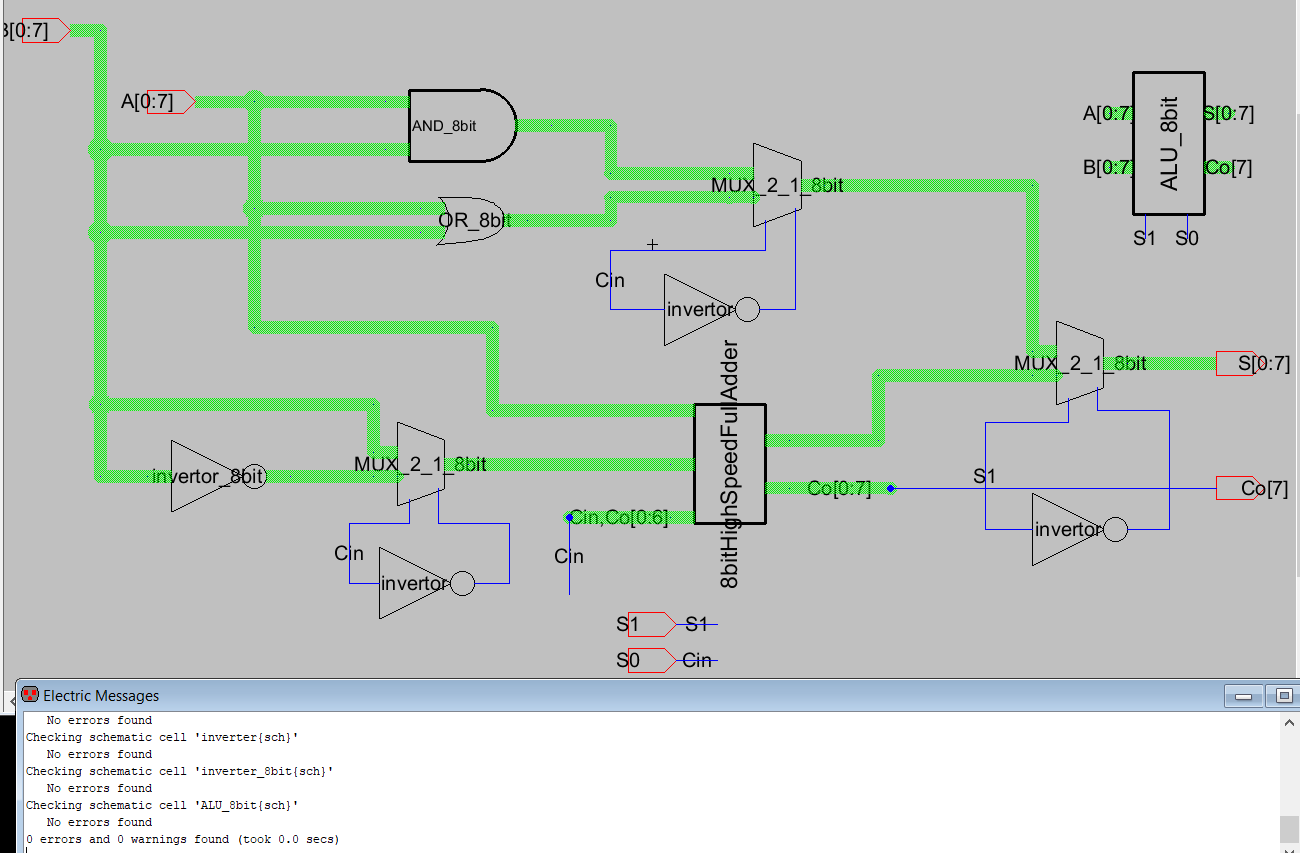 this lab we used ElectricVLSI to build 8-bit ALU in ElectricVLSI