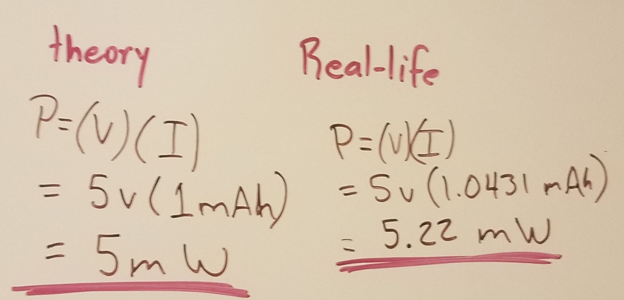 Fig 7 Power consumption of the circuit in real life is greater than in theory.