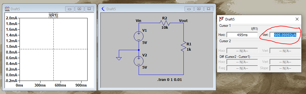 Fig 9 Calculation of Current shows that it's .909 mA.