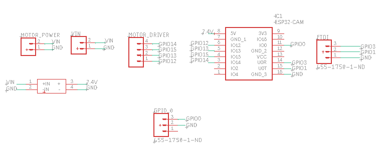 The schematic showed in Figure 8 contains an ESP32-CAM module, pins for