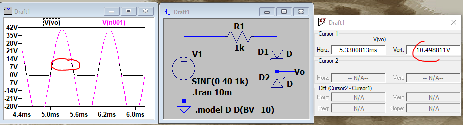 and a resistor to managed the voltege Built-in to be 10. LT Spice was