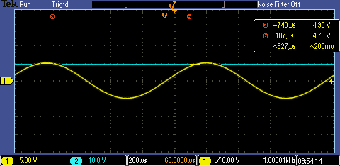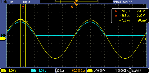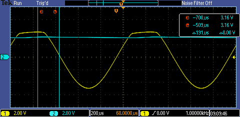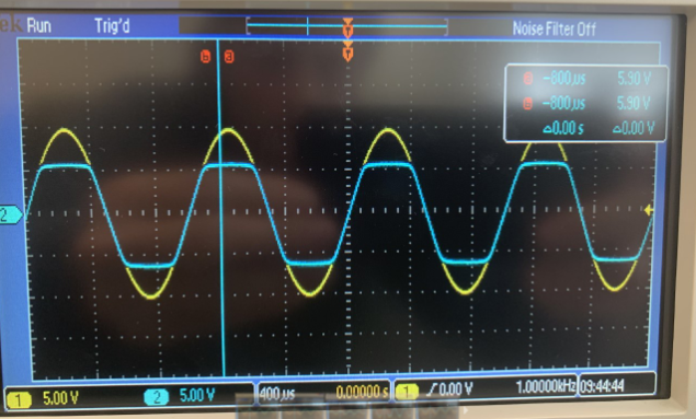 from the breadboard built. In task two we got a nice line as a signal,