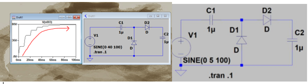 circuit given to make a voltage doubler in LT Spice and breadboard.