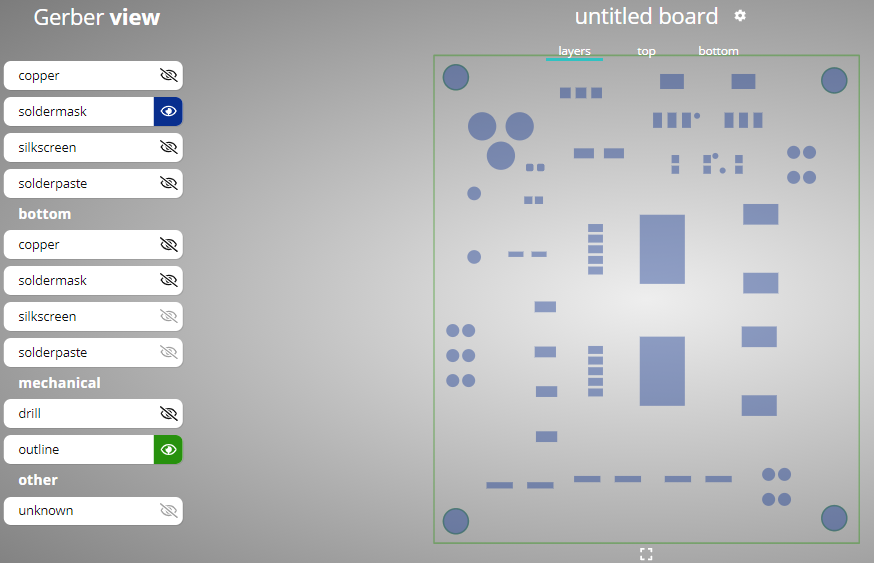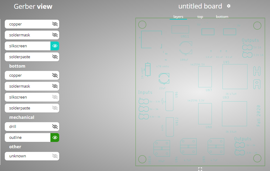 Figure 4. A layer view of the PCB final, silkscreen and solder mask respectively.