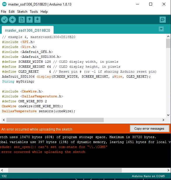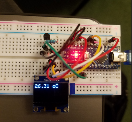 Fugure 5. Blinking an LED while displaying temperature and using 1 wire