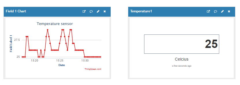 Fugure 7. Temperature monitor in ThingsSpeak.
