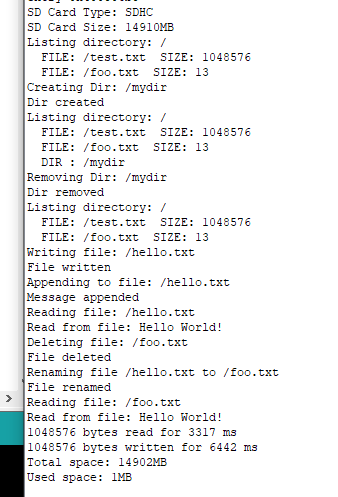 Now, we conected the sd reader module to the esp32 and test the connection showing in Figure 4.