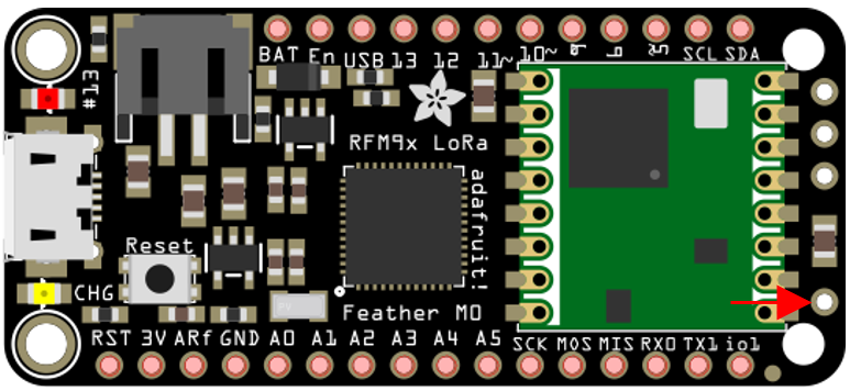 built in reset pin on the Feather chip. The 13 LED will breathe red and