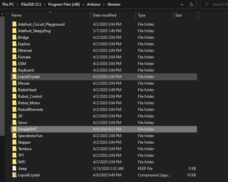 mentiond above, SimpleDHT, RadioHead, LiquidCrystal, and