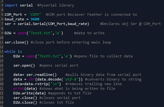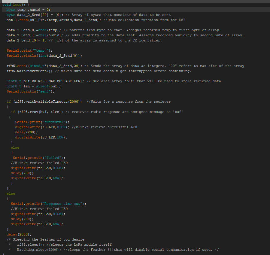 Feathers w/ LoRa being used to transmit data. Going forward, adapt what