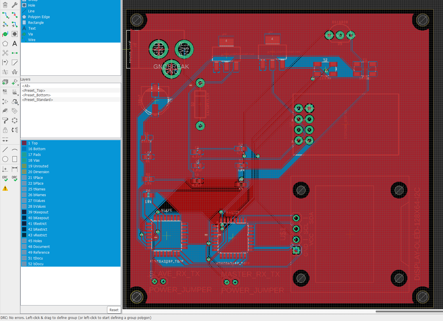 Final PCB, DRC clean.