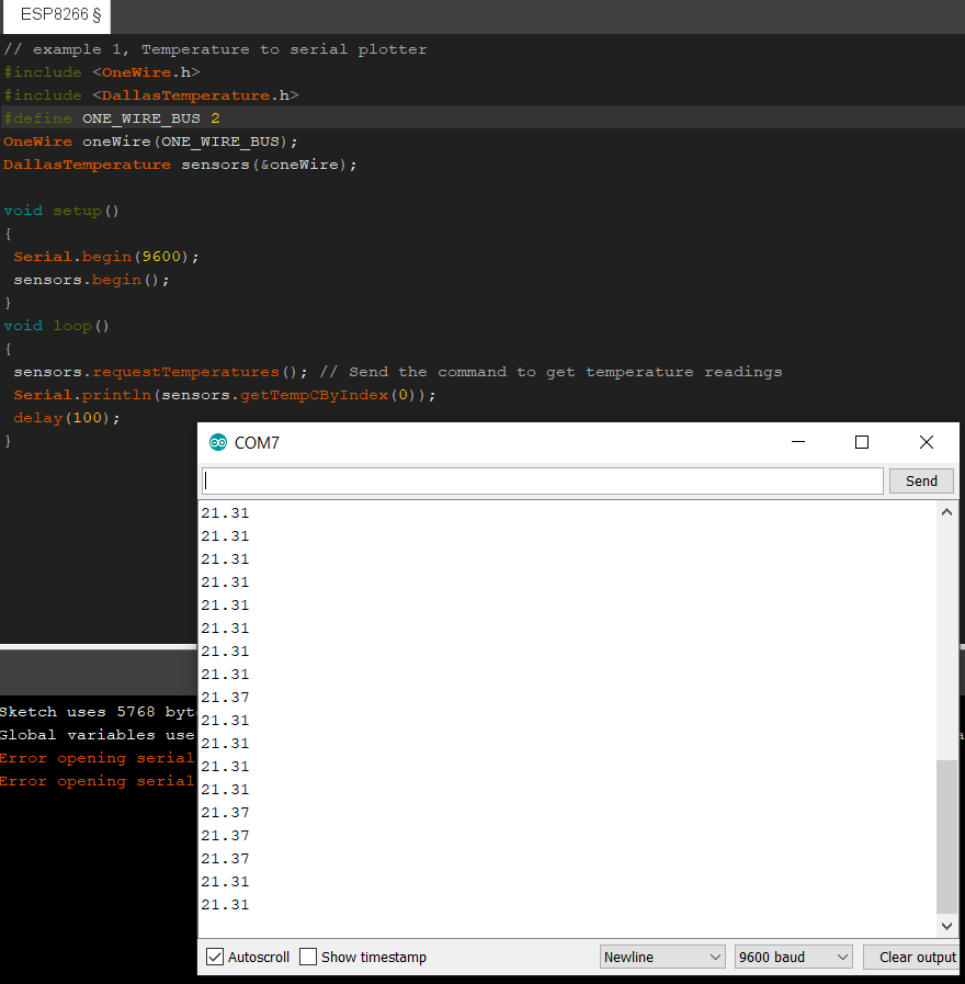 Task 1.2 Printing temperature data to serial monitor.