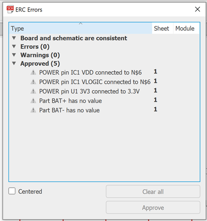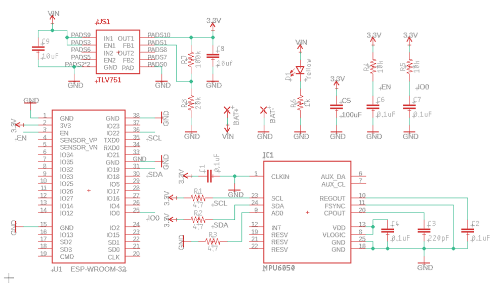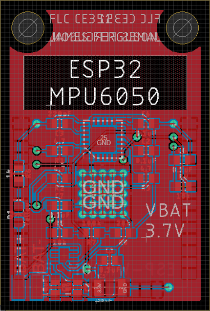 A PCB was also designed. The following shows the designed schematic and layout. The ESP32 is on the backside of the board.
