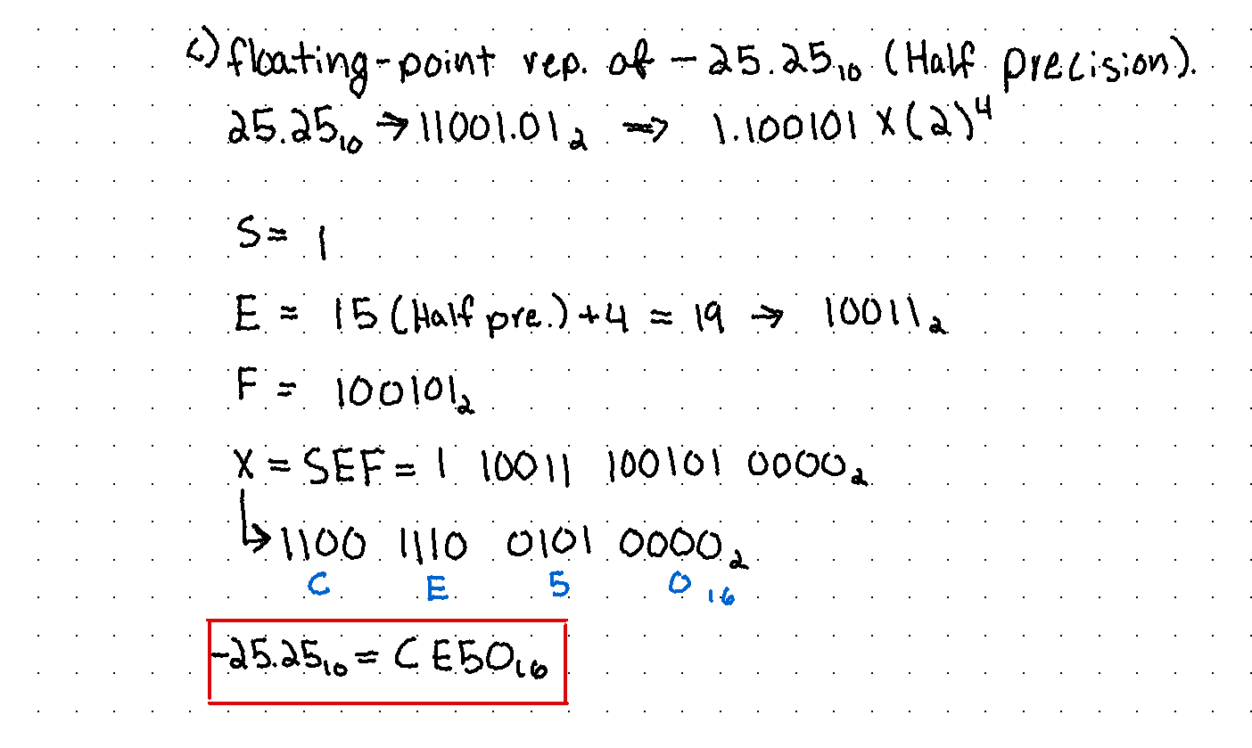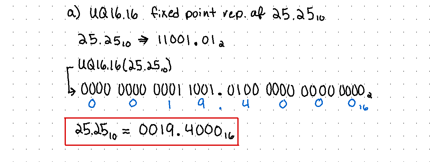 UQ16.16 fixed point representation of 25.25 (10). (5 points)