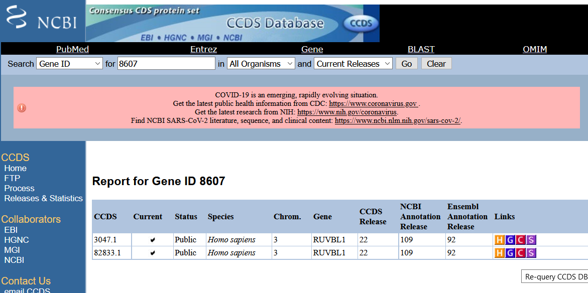 CCDS IDs, choose one and select "C" in the Links column. Towards the