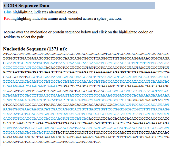 bottom of the page, you will see the nucleotide sequence. Copy the