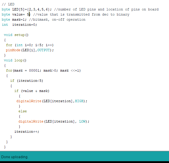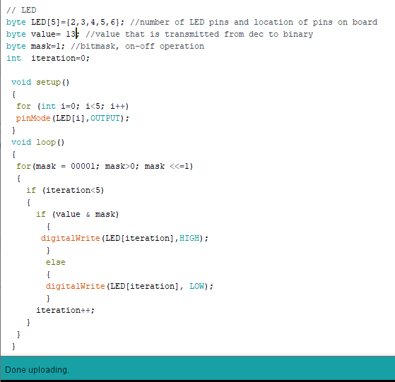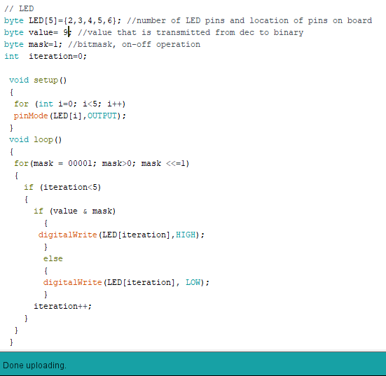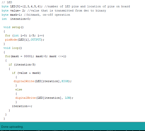 Table 2: Conversion of hexidecimal values to binary representation in Arduino.