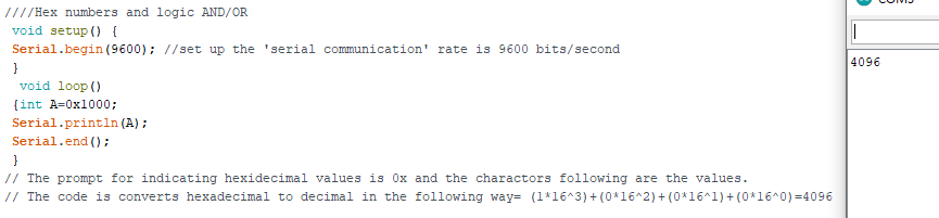 number (0x1000) returned as a decimal numder (4096). The command '0x'