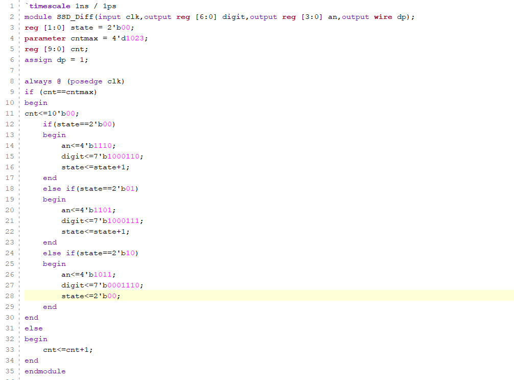 sensitivity list and if-else statements. Figure 13: Seven-segment "FLC" code.
