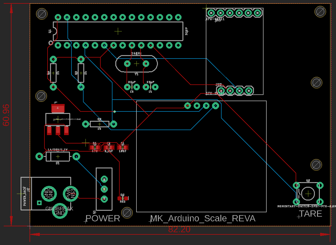 Figure 3: Scale interface board layout in Eagle PCB