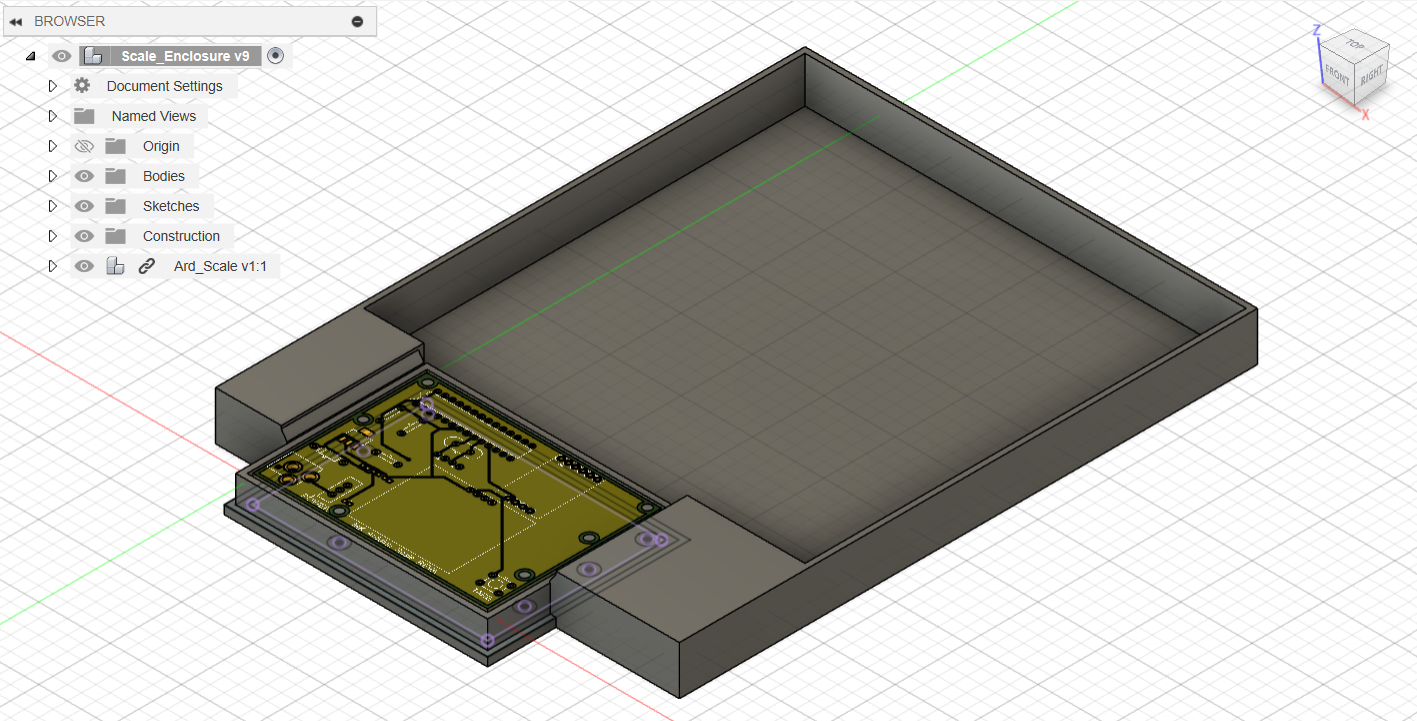 enclosure displaying weight in grams on OLED