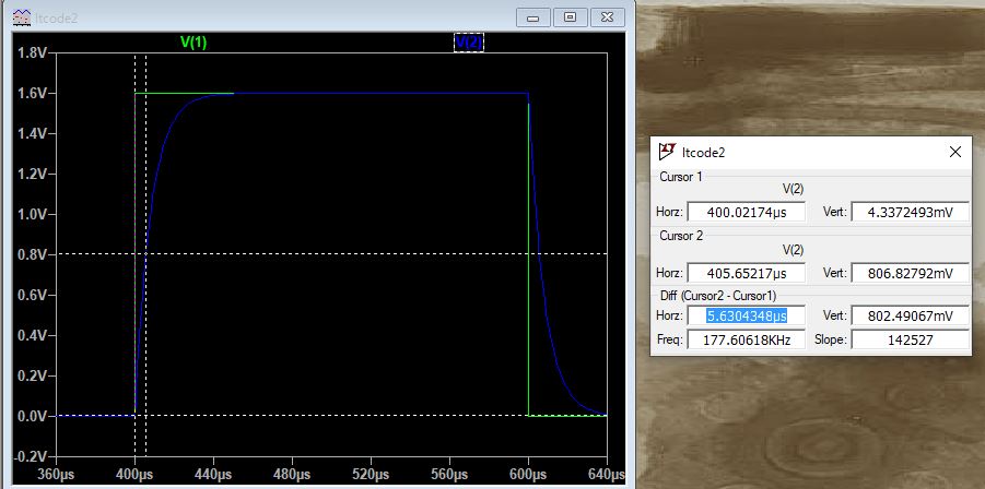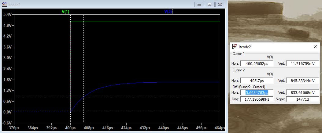Figure 11: Time constant from the simulation of the Thevenin equivalent circuit.