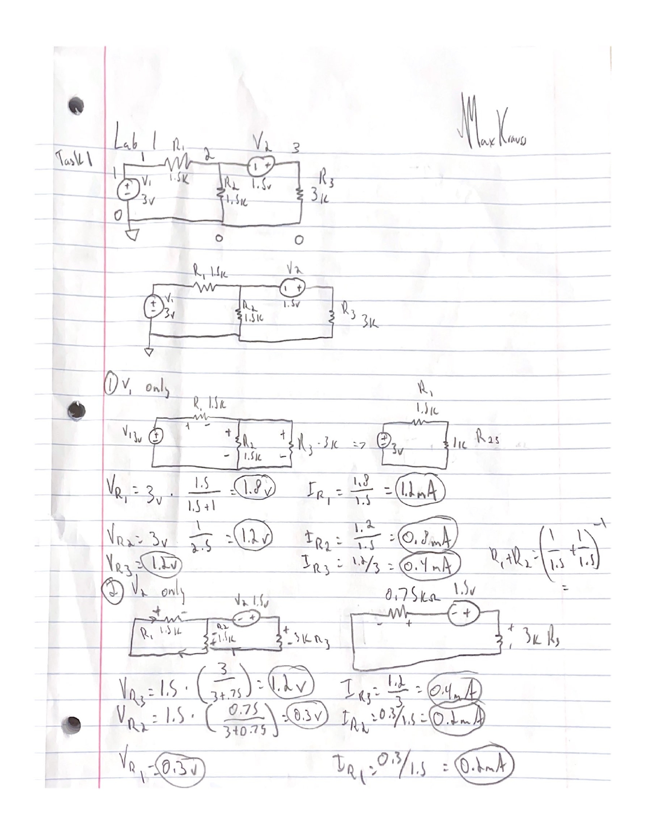 Lab 2 - Review Superposition, Thevenin's Equivalent Circuit, and LTSpice