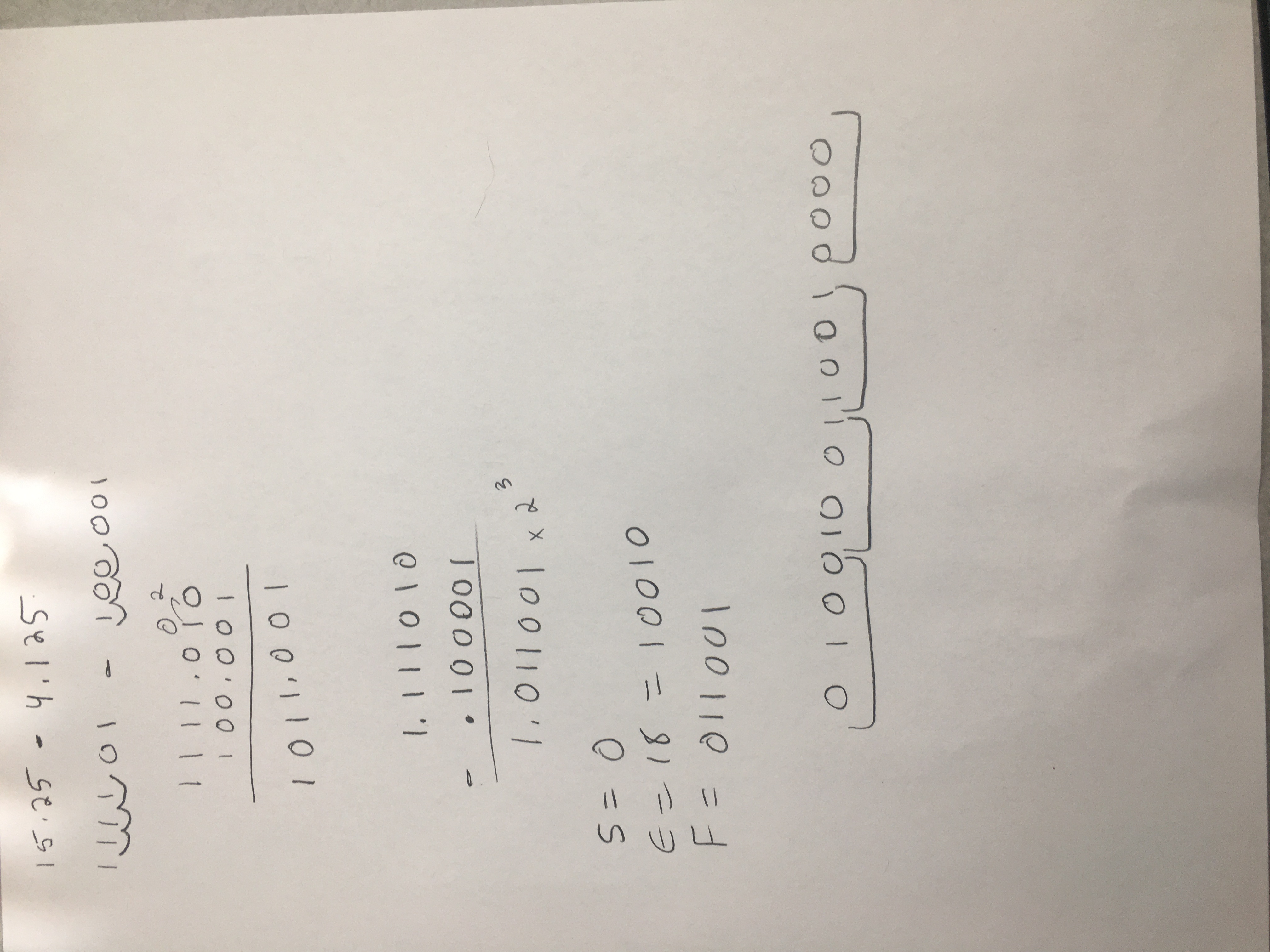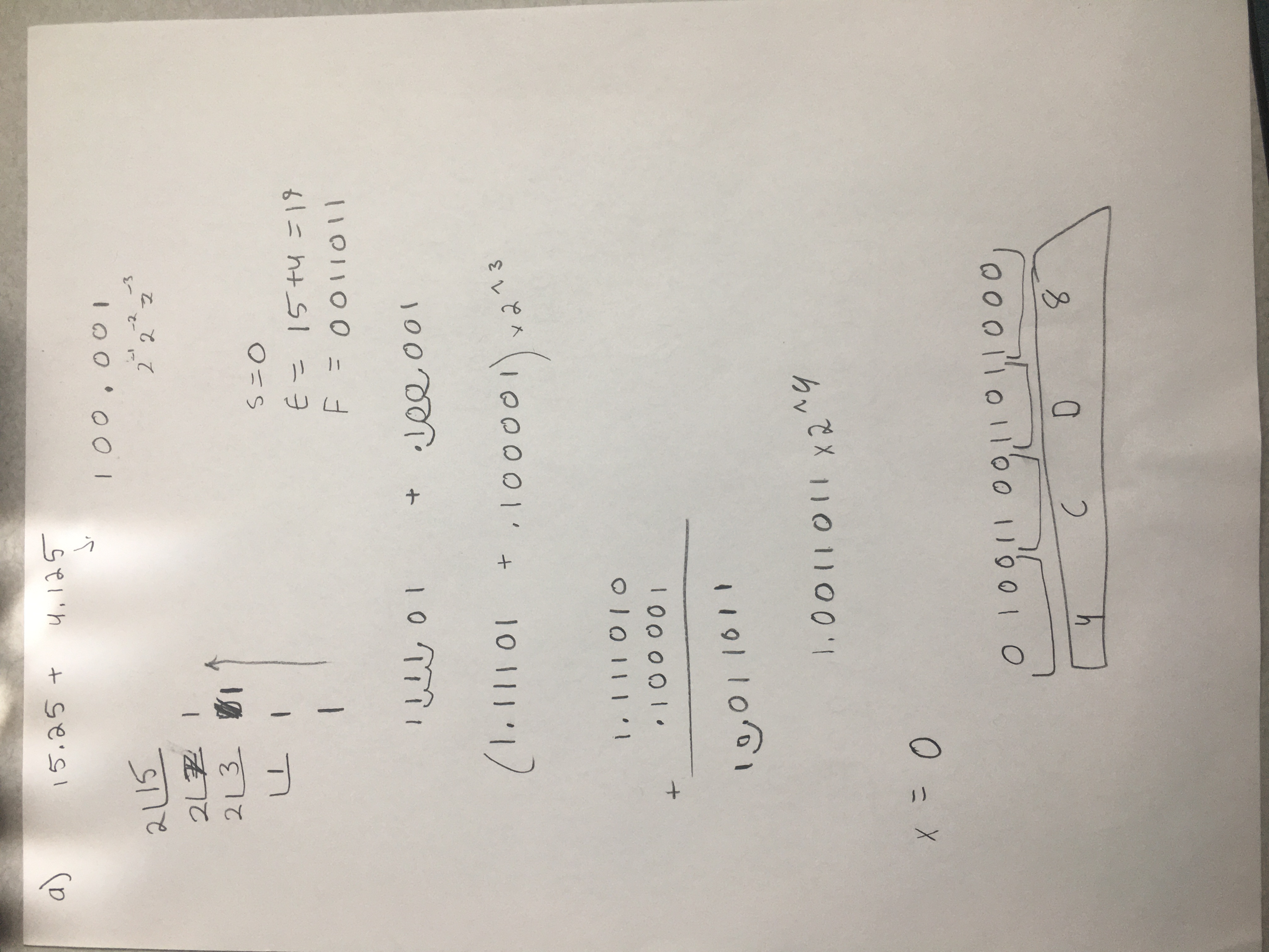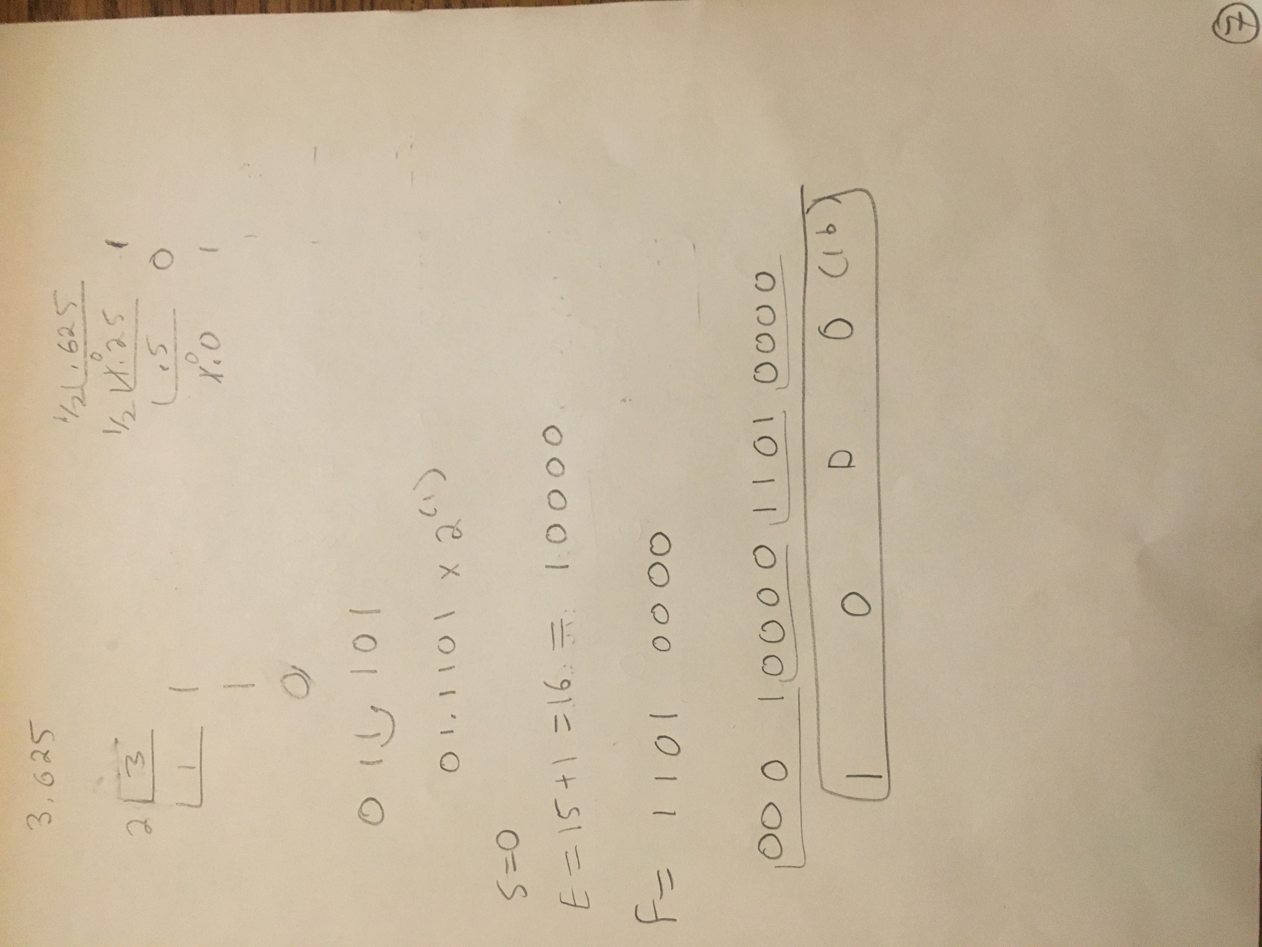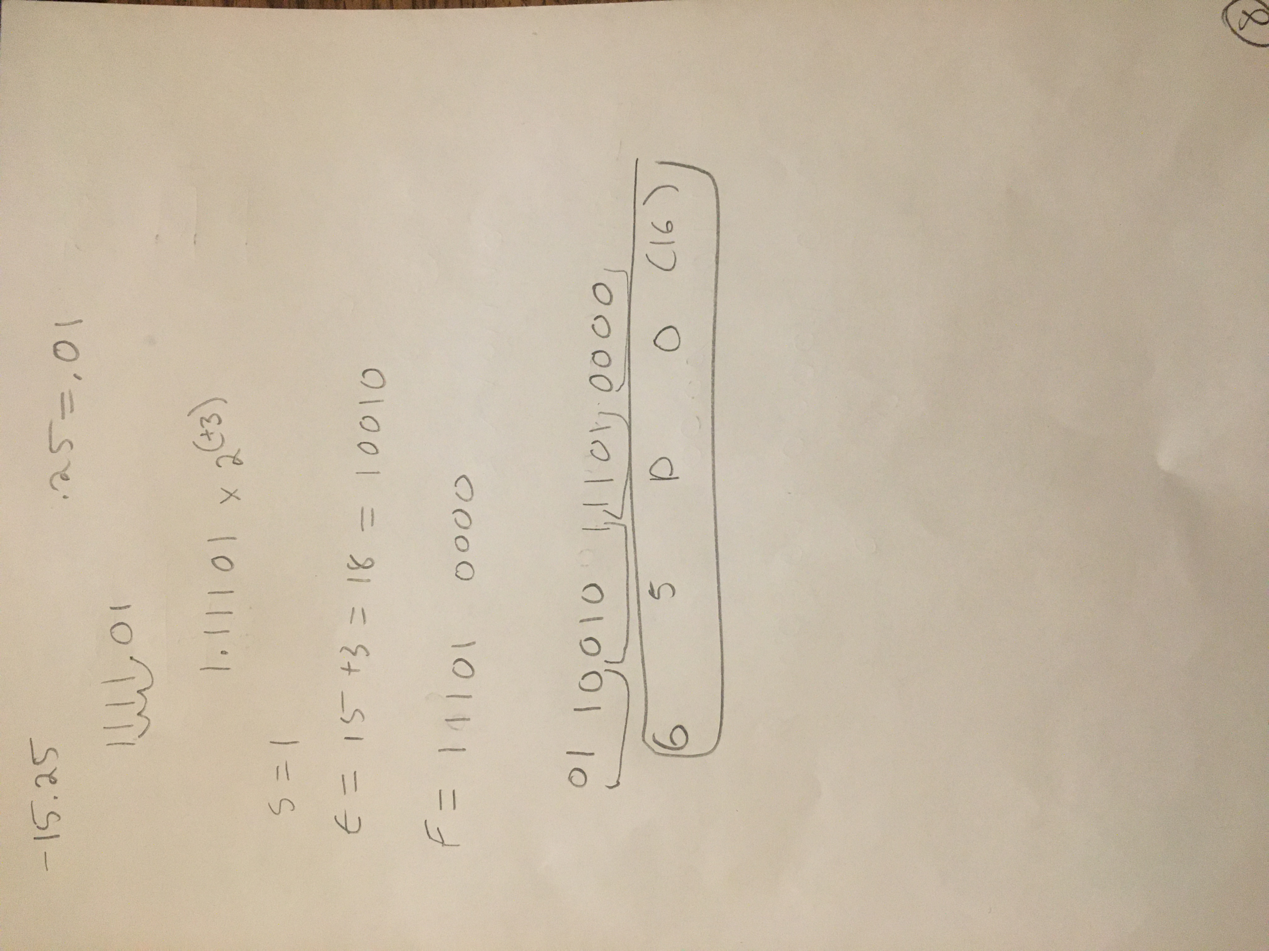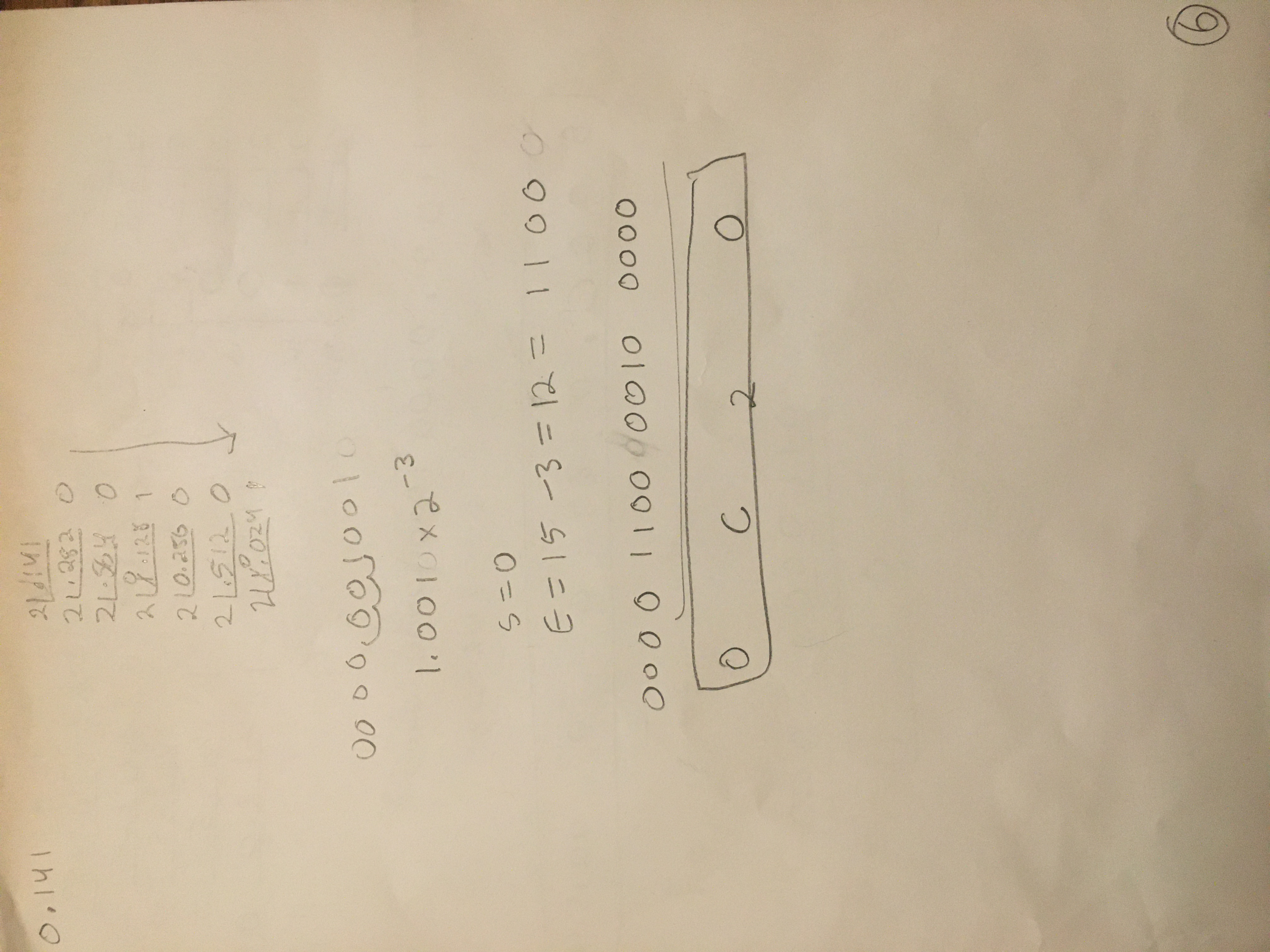 b. What are the floating point representations of the following decimal numbers? 0.141 in half precision/format 3.625 in half precision/format -15.25 in half precision/format