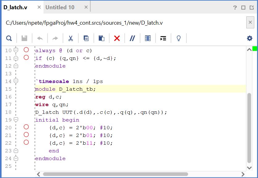 Figure 1. SR latch simulation using verilog to contruct device and testbench.