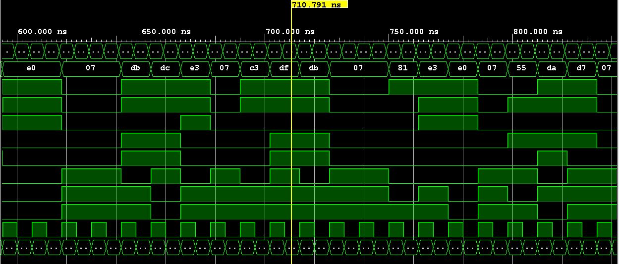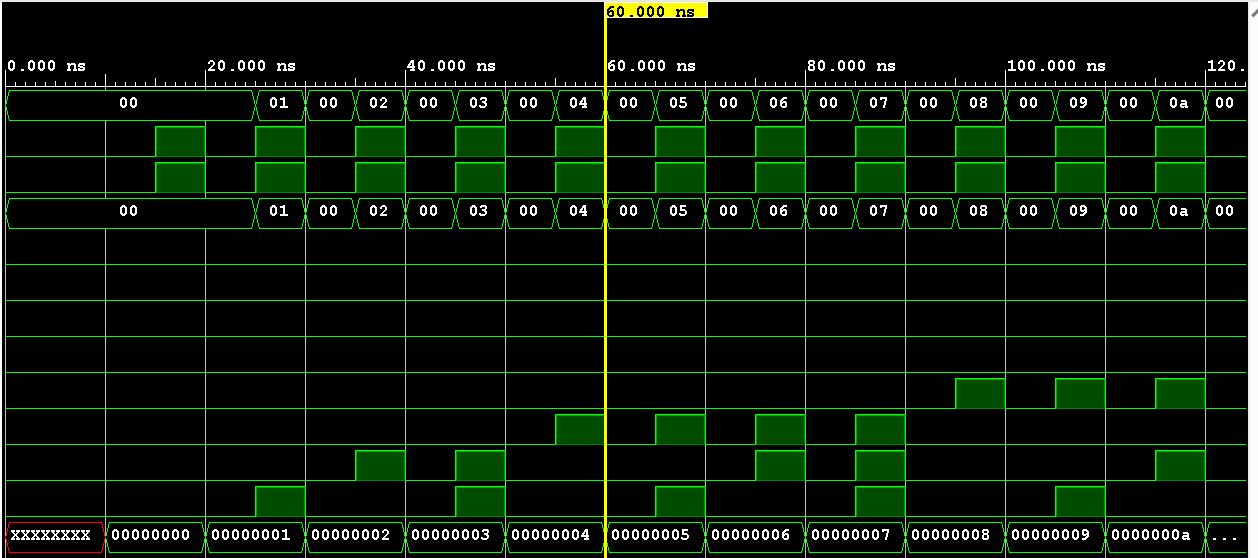 Figure 3. D latch simulation made using verilog and simulated with test bench.
