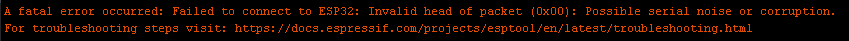 Figure 2 - Screenshot of the error message displayed when attempting to upload to one of the ESP32S boards.