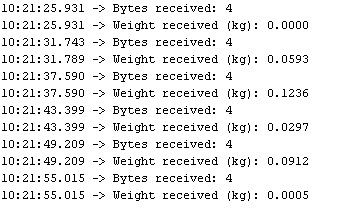 Figure 2 - Screenshot of data received from ESP32S connected to strain gauge.