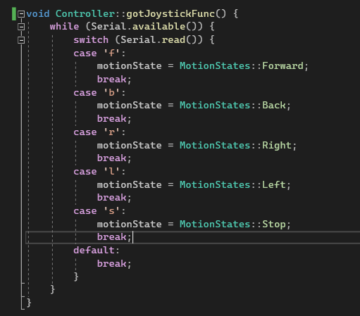 Figure 2 - The main control function that decodes received characters to set the relevant motion state.